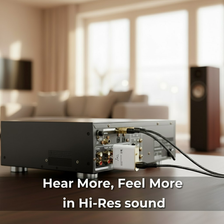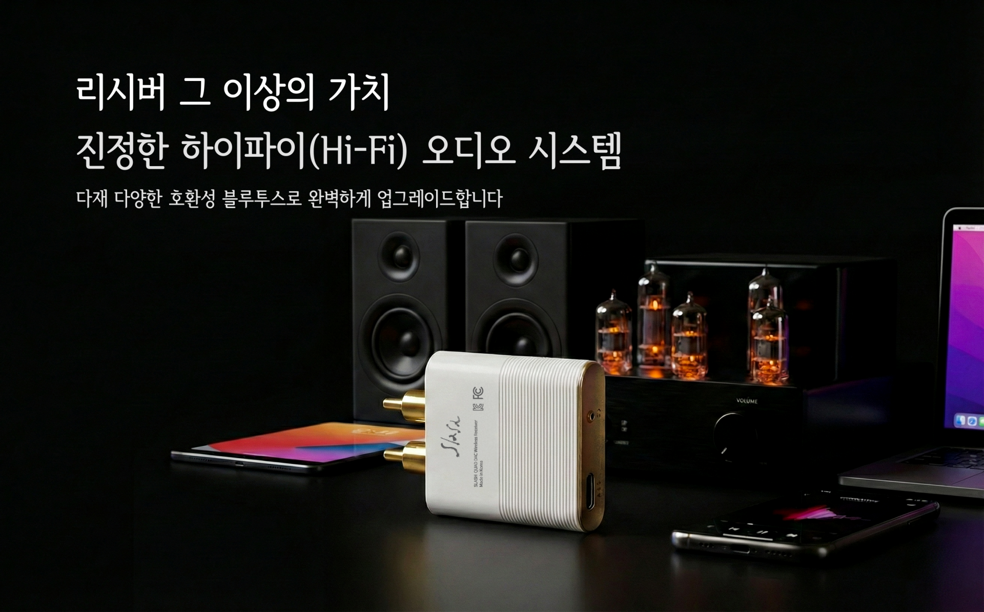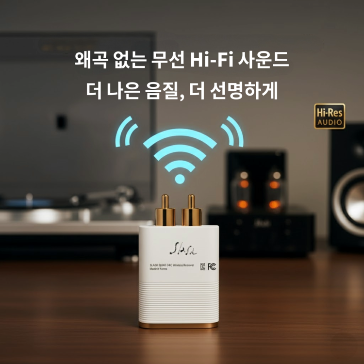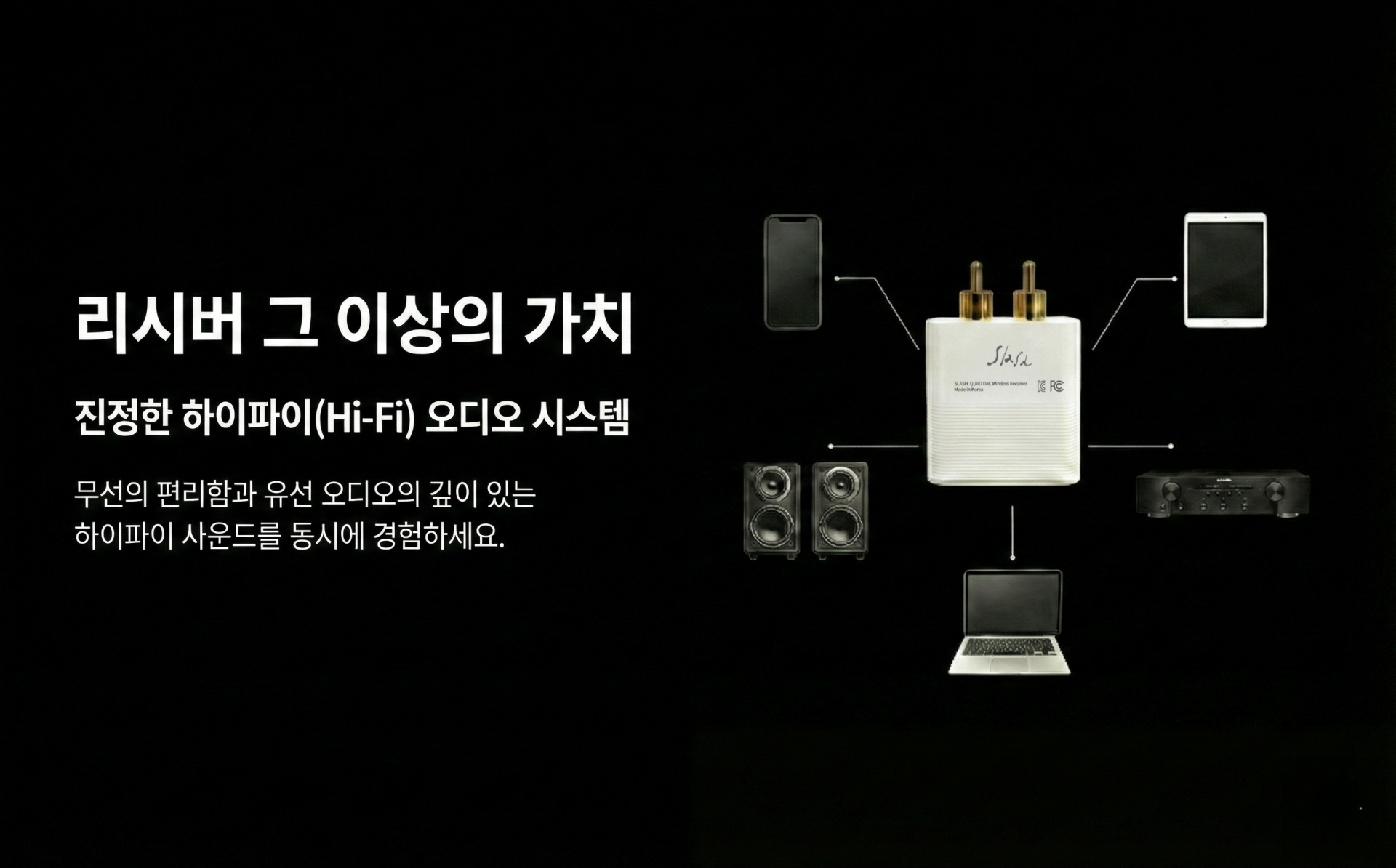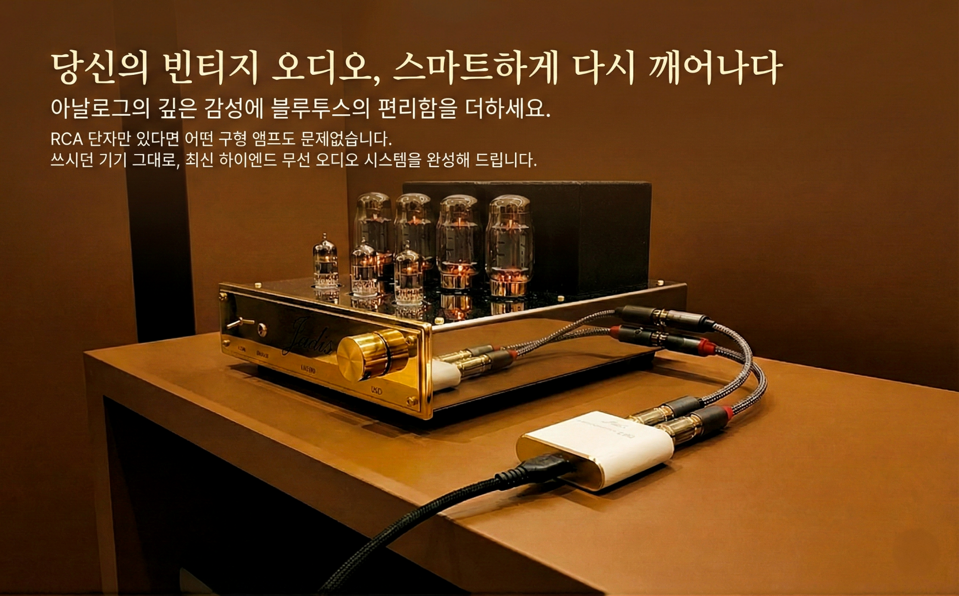 노이즈 없는 "다이렉트 직결" 디자인 앰프의 RCA 입력 단자에 직접 꽂는 특허받은 디자인으로, 지저분한 케이블과 신호 손실을 원천 차단했습니다. 이러한 "Zero-Cable" 구조는 그라운드 루프 노이즈를 제거하여, 스마트폰의 음원을 스피커까지 가장 순수한 상태로 전달합니다.