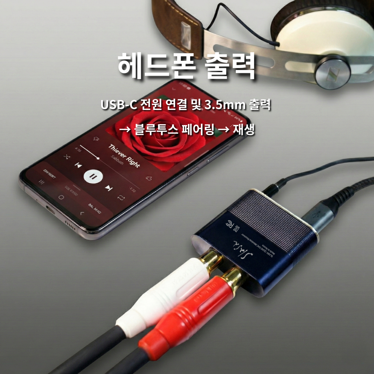 SLASH5 LDAC 블루투스 오디오 리시버 3.5mm 입력 RCA 출력 헤드폰