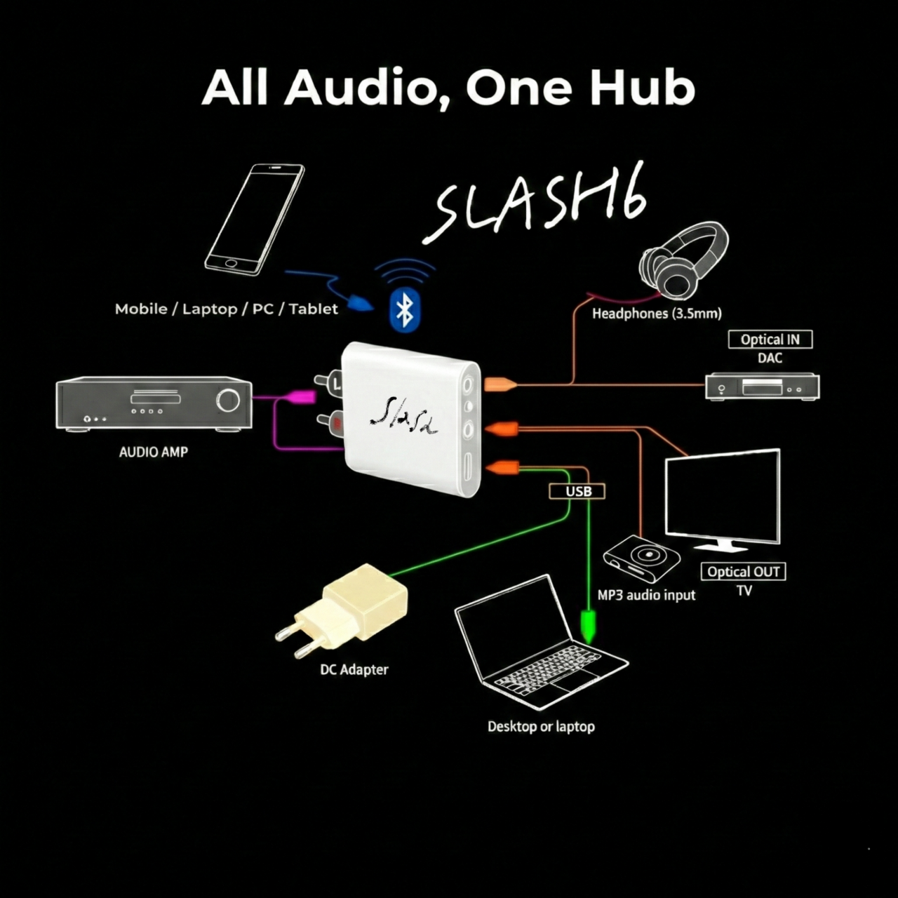 SLASH7 USB DAC 블루투스 리시버 LDAC 헤드폰 앰프 광출력 PC-Fi