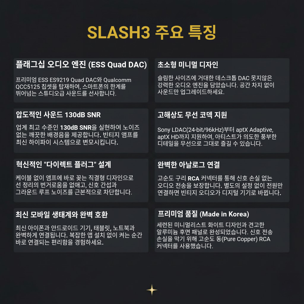[판매 1위] SLASH3 하이파이 블루투스 DAC 리시버 LDAC, AptX Adaptive, AptX HD 등 모든 고음질 코덱 지원! 기존 앰프나 스피커에 연결하여 스마트폰의 음악을 초고음질 무선 사운드로 즐기세요.