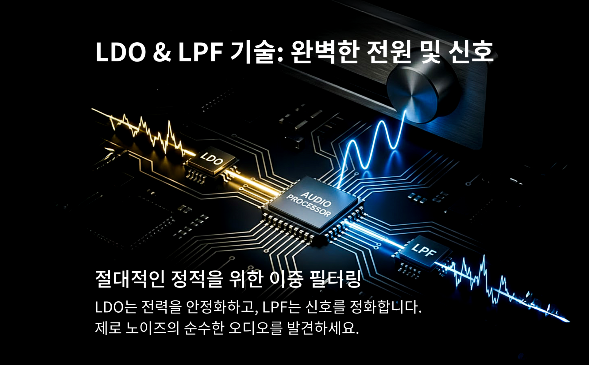LPF 노이즈 필터링 | 전용 LPF 칩을 탑재해 노이즈를 제거, 깨끗하고 끊김 없는 사운드 제공 | |