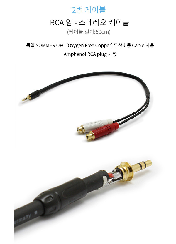 프리미엄 RCA 스테레오 연장 케이블 50cm (2번) 독일 SOMMER OFC 무산소동 케이블과 Amphenol RCA 플러그를 사용하여 음질 손실 없는 깨끗한 사운드를 전송합니다.